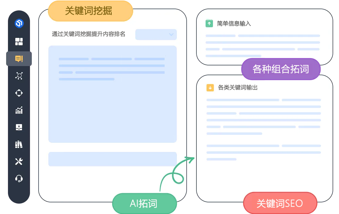 • 支持利用AI智能进行关键词挖掘和拓展