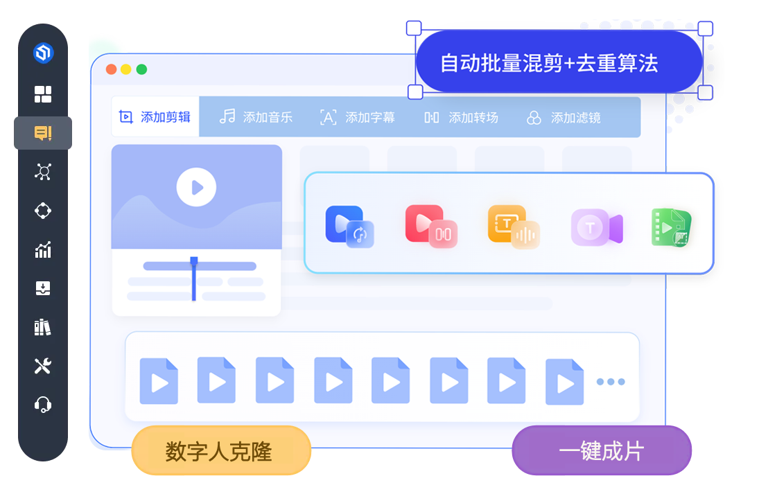 通过高保真声音克隆 形象克隆技术,利用文案自动驱动唇形同步,创作高质量短视频。系统还包括智能批量混剪 一键成片等功能,通过矩阵管理自动发布视频到抖音 快手 小红书和视频号等平台