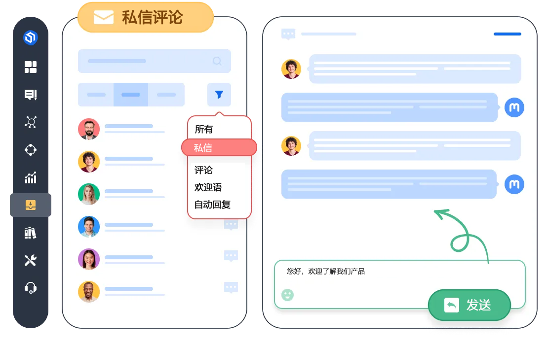内置抖音SEO功能,并且通过高效的管理多账号抖音评论和私信,可以将客户快速引流到私域平台