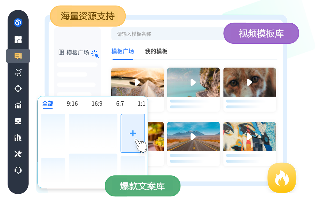 系统内置大量模板、脚本、优质文案、优质视频素材等各类资源,协助您更方便的创作短视频内容